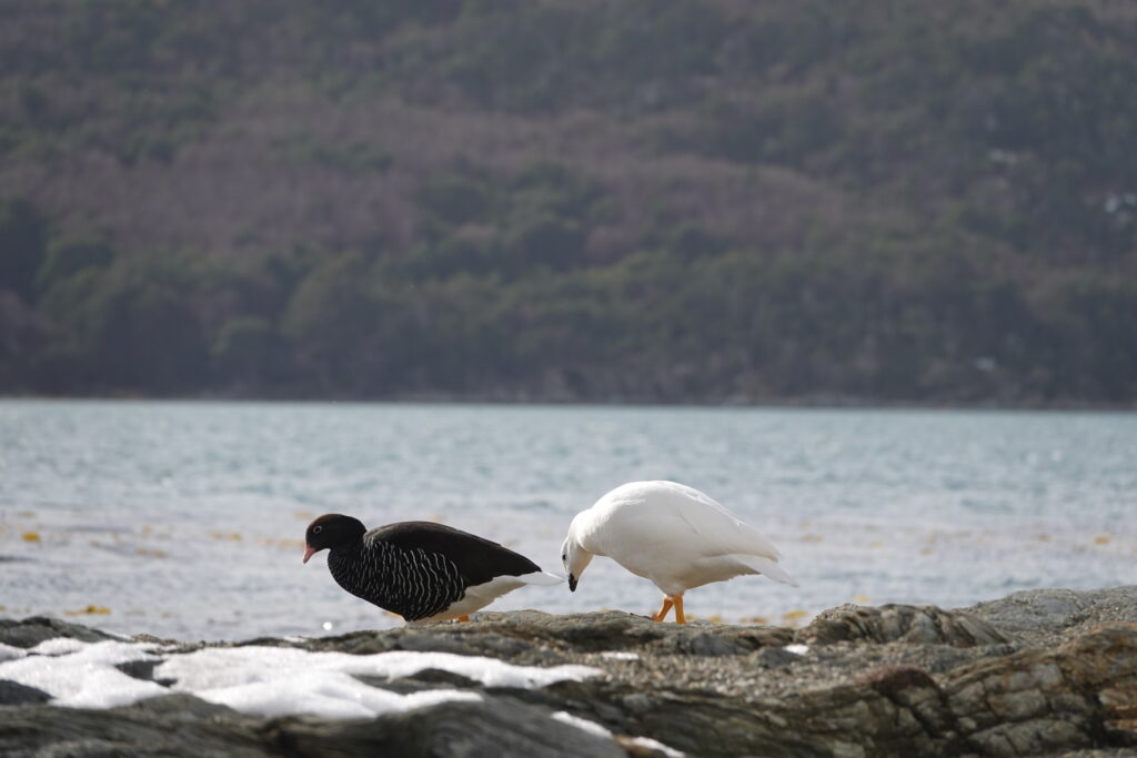 Unlike other South American sheldgeese that dominate inland grasslands and wetlands, this species is strongly tied to the marine edge. In Tierra del Fuego and the Beagle Channel region, it is a characteristic presence along exposed coasts, usually encountered in pairs or small family groups rather than large flocks. Its calm, territorial behavior and close association with kelp beds make it a predictable inhabitant of suitable shoreline habitats.
