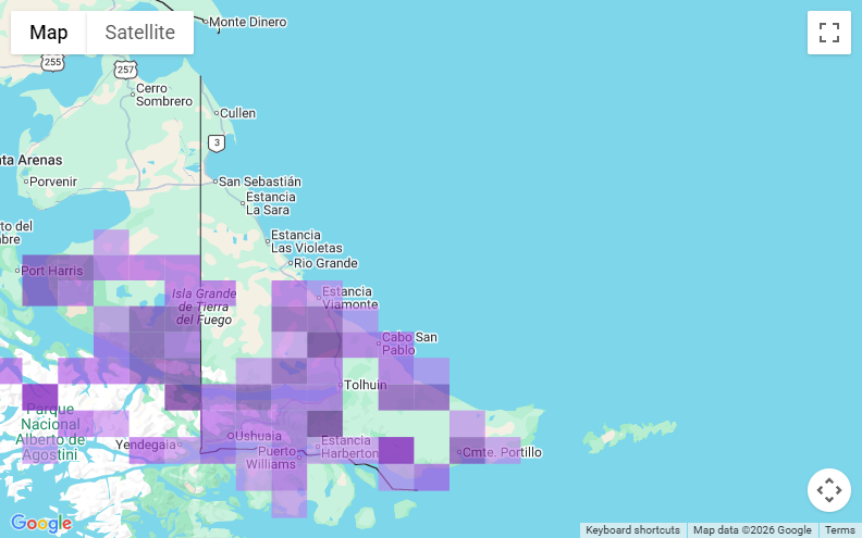This species occurs in forested areas of southern Chile and Argentina, closely tied to native temperate forests. It is especially associated with mature Nothofagus stands and is often considered an indicator of high-quality, intact forest. It ranges from sea level up to the treeline (roughly 1,500–2,300 m), with some seasonal shifts at higher elevations. It is widespread in southern Chile (including Chiloé and Tierra del Fuego) and follows the Andean forest belt in Argentina from Mendoza south through Patagonia.